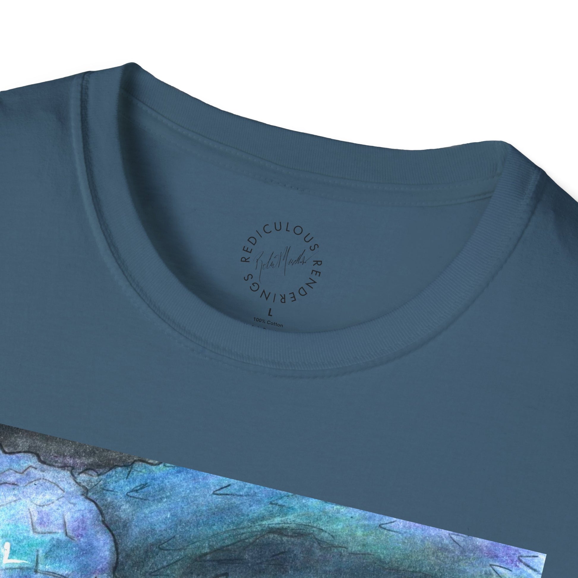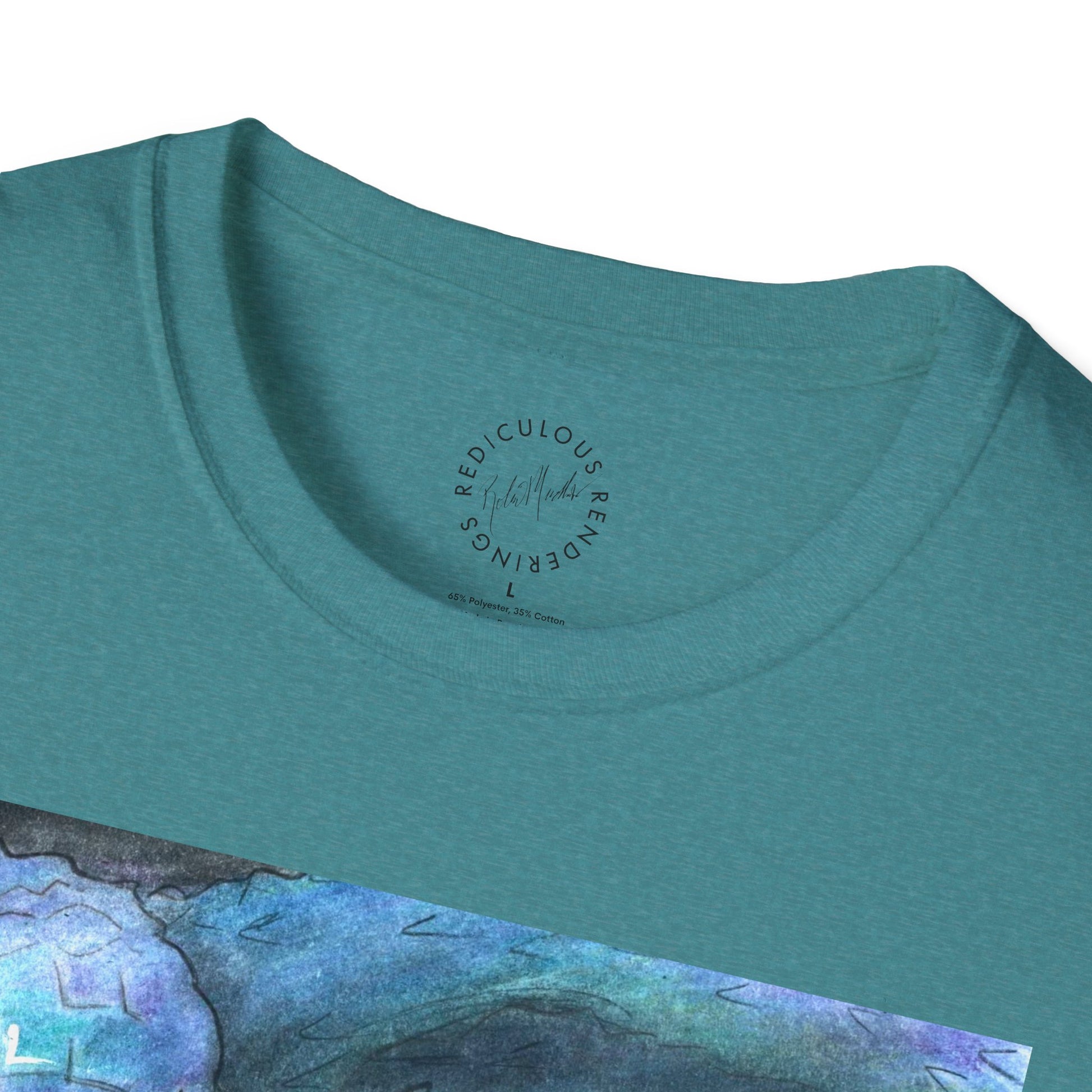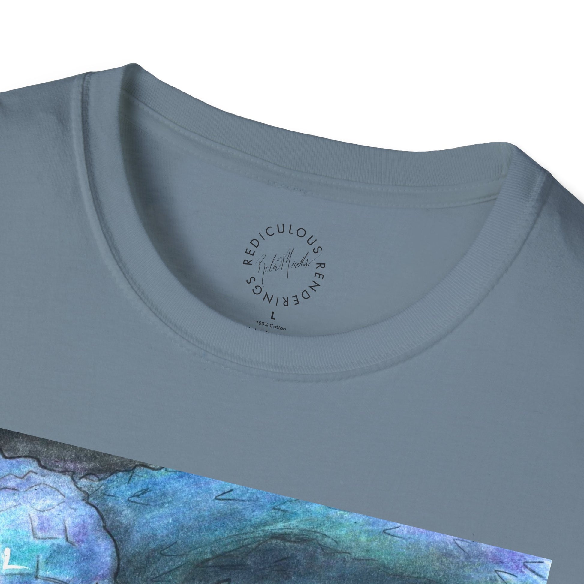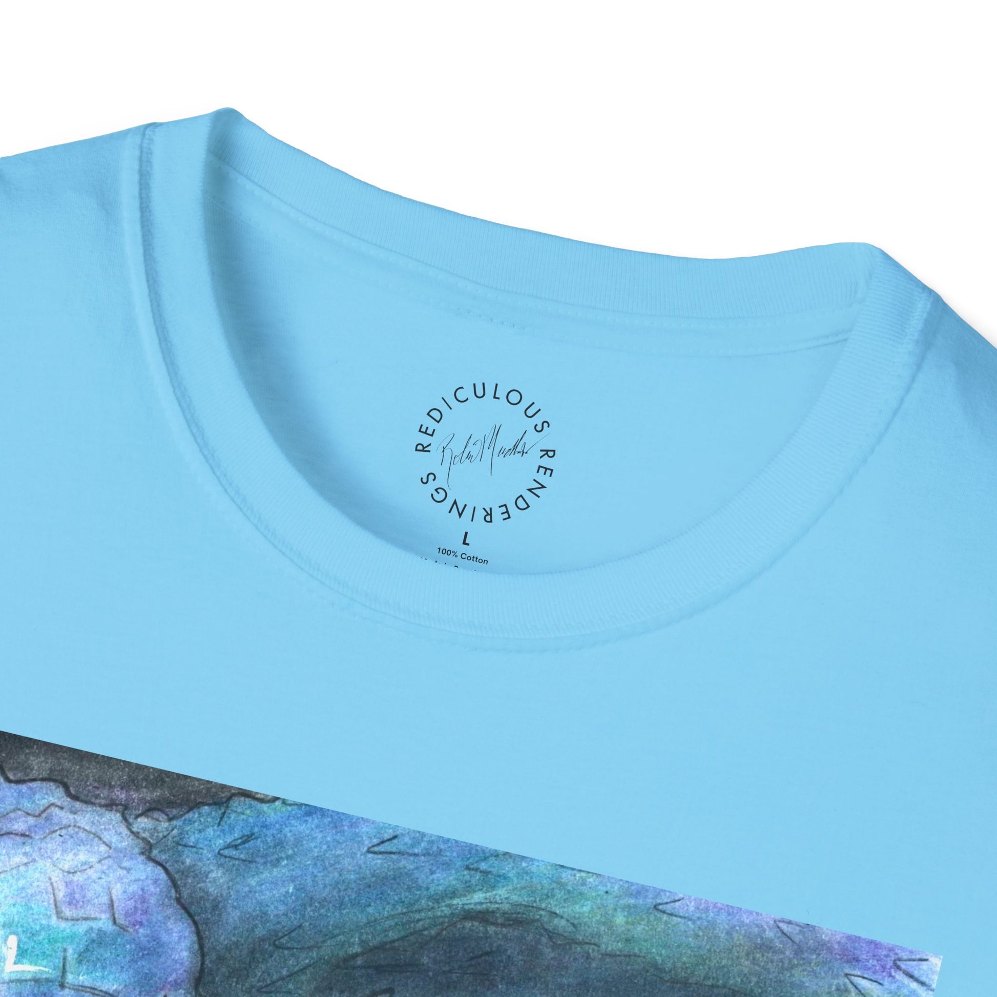 Vibrant hand drawn blue red and black snake soft unisex t-shirt that provides a comfortable and stylish look. Perfect for adults looking for a unique and eye-catching piece of clothing. Suitable for casual wear or as a statement piece for special occasions and events.