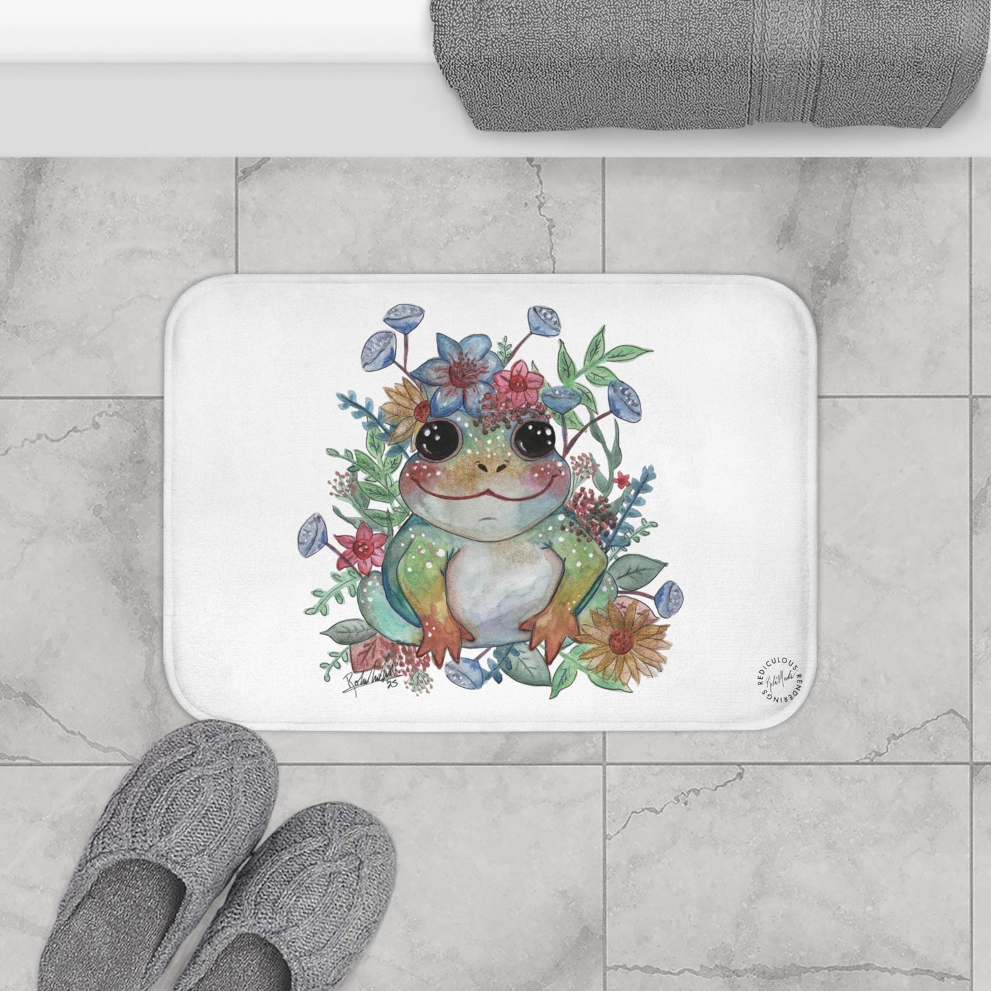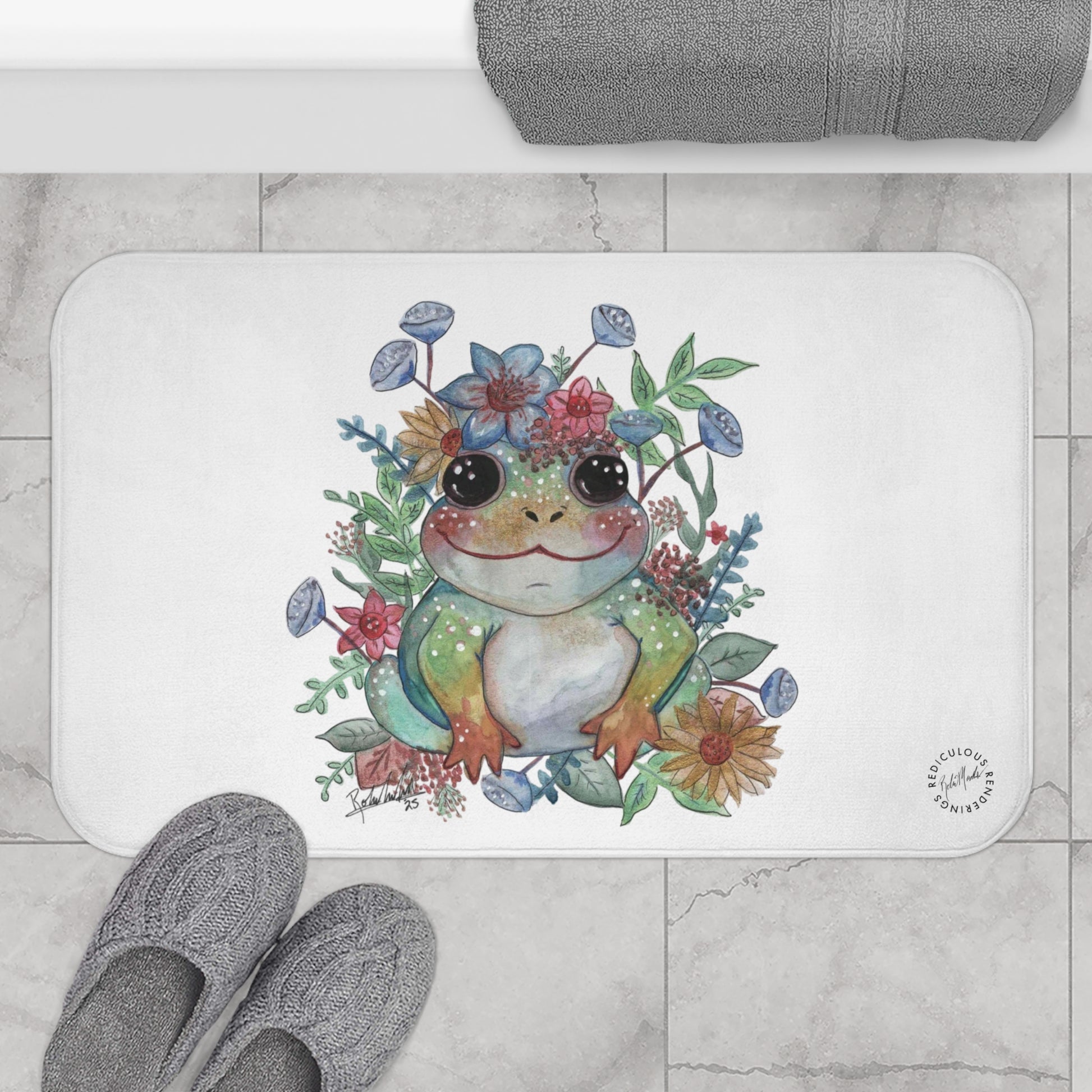 Floral Frog Bath Mat