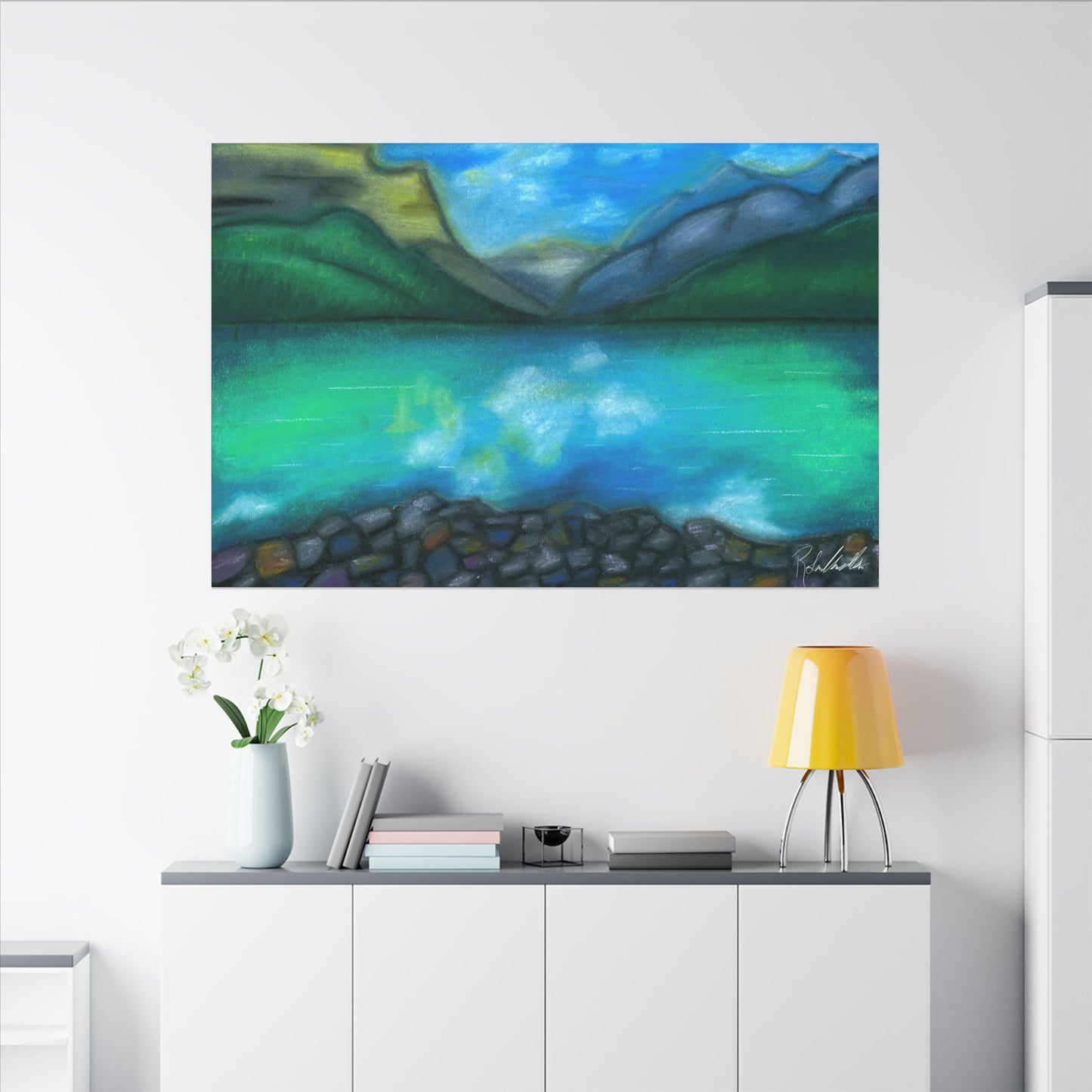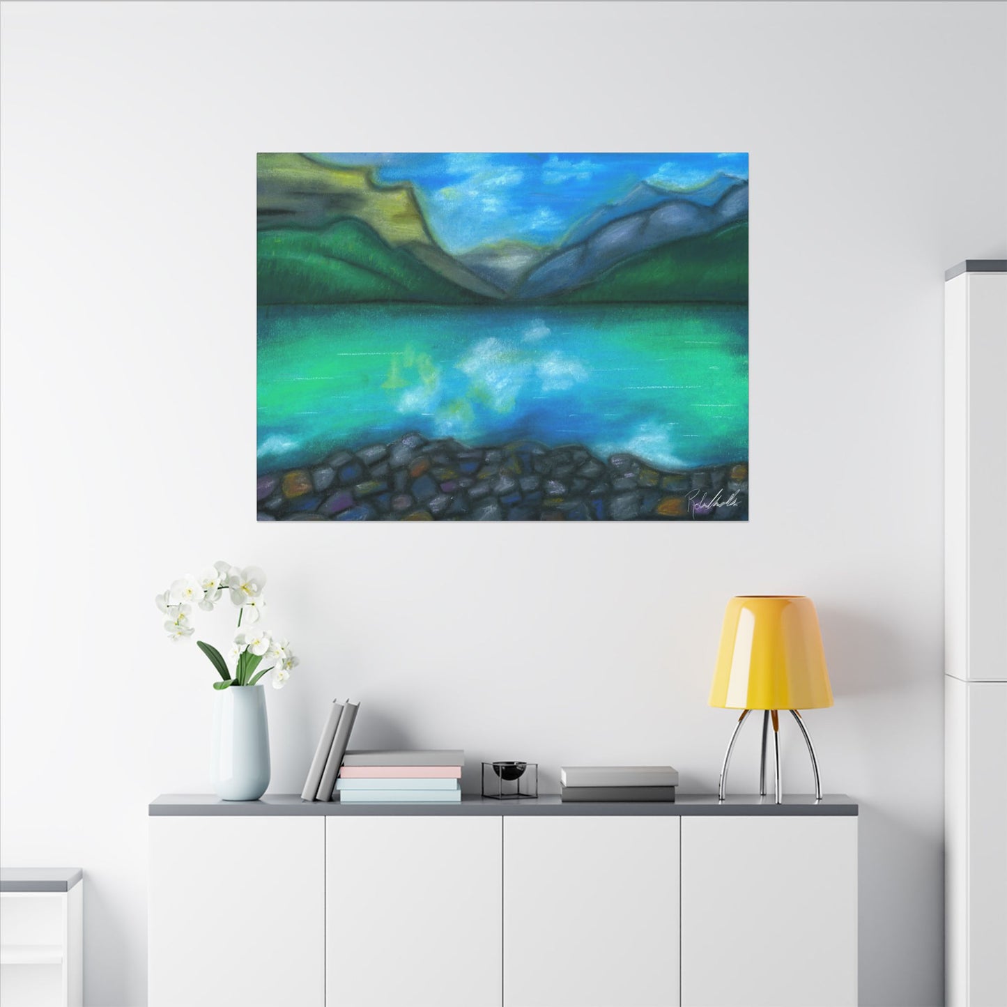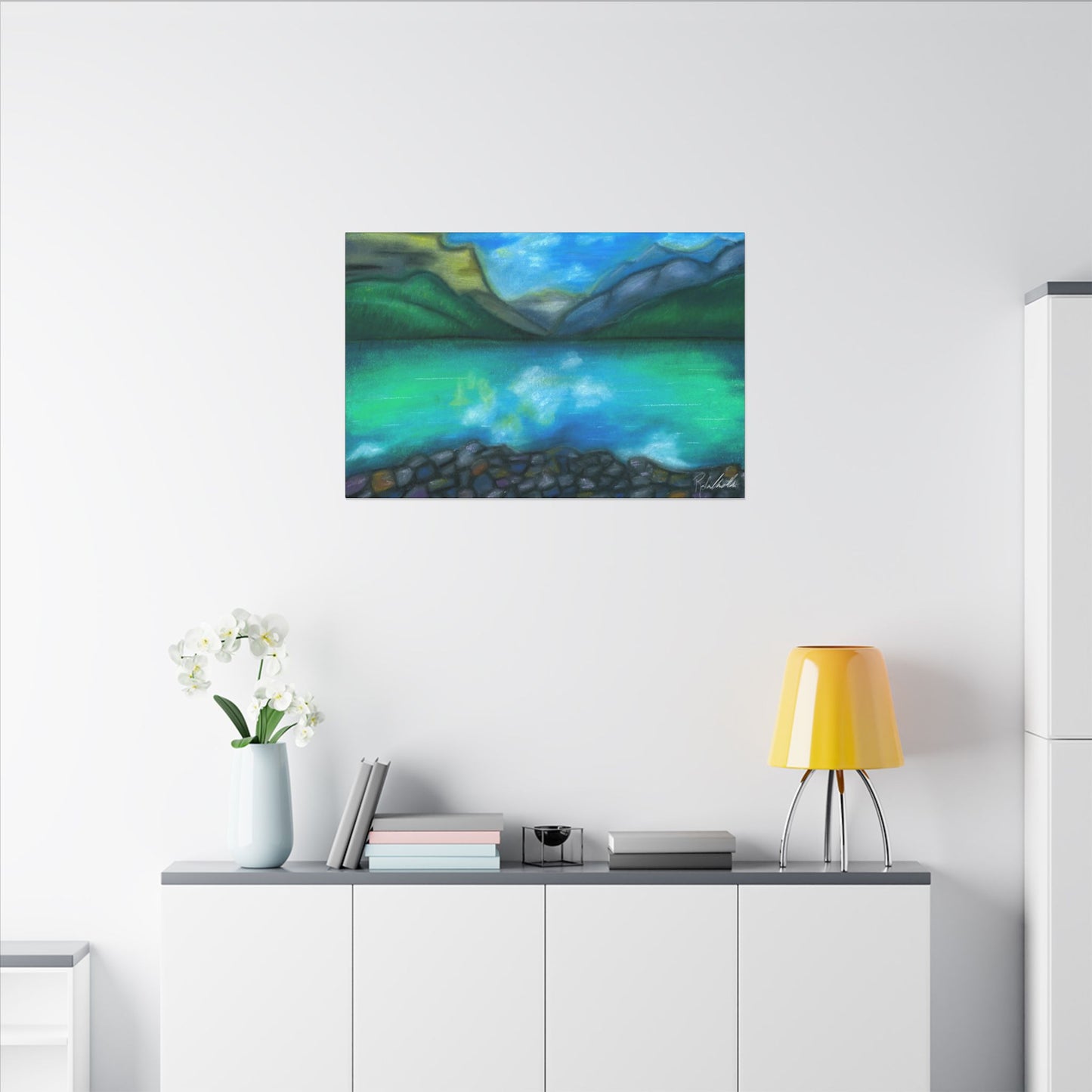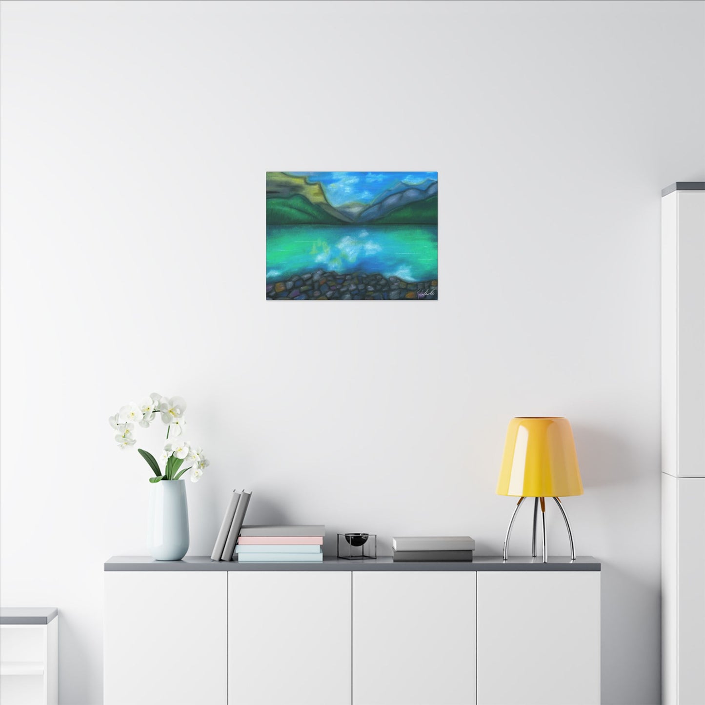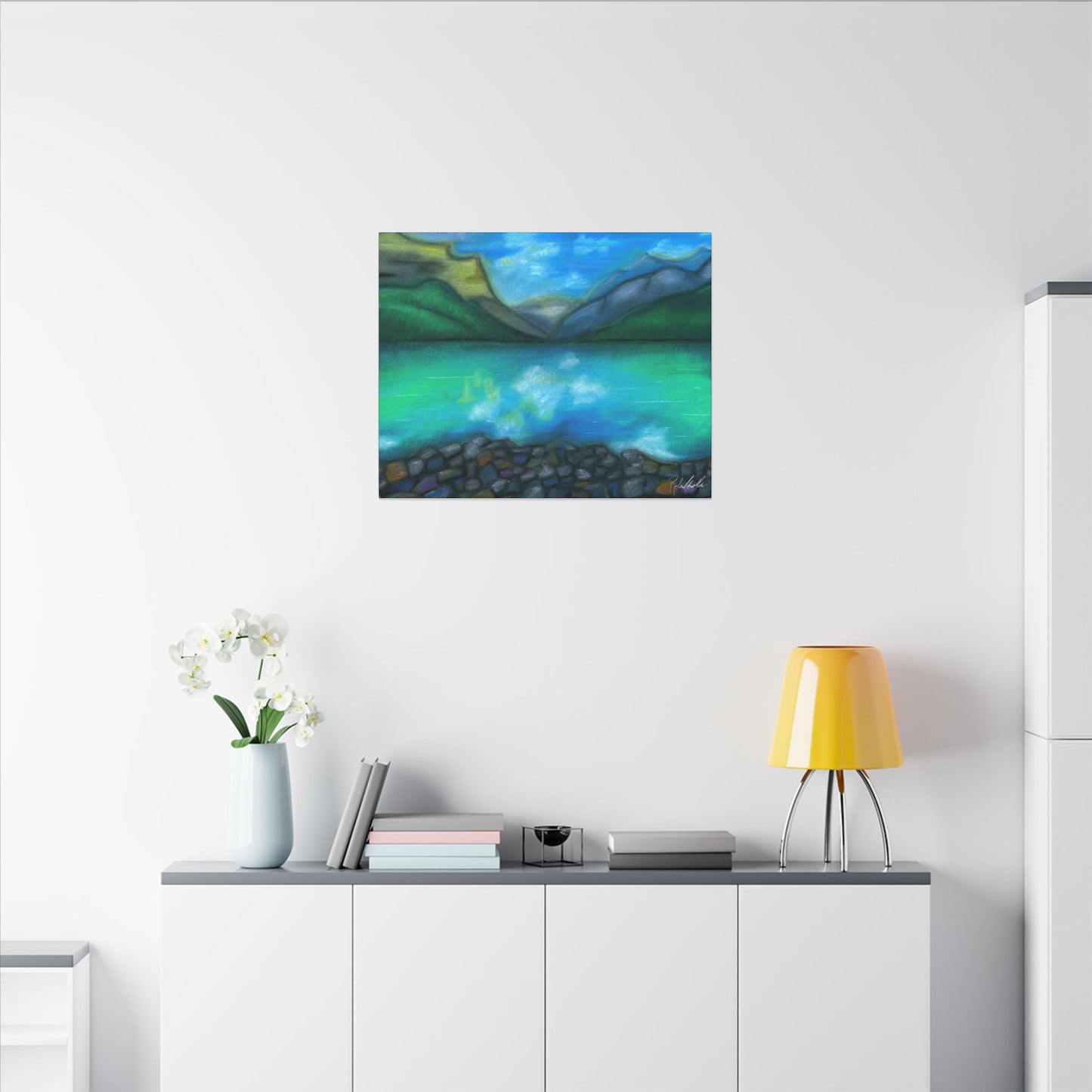 This peaceful mountain lake is perfect for any home. Enjoy this calming escape in this exquisite Canvas Wrap. Perfect for nature lovers and those seeking a unique touch in their home decor. Ideal for gifting during holidays, birthdays, housewarmings, and special occasions.