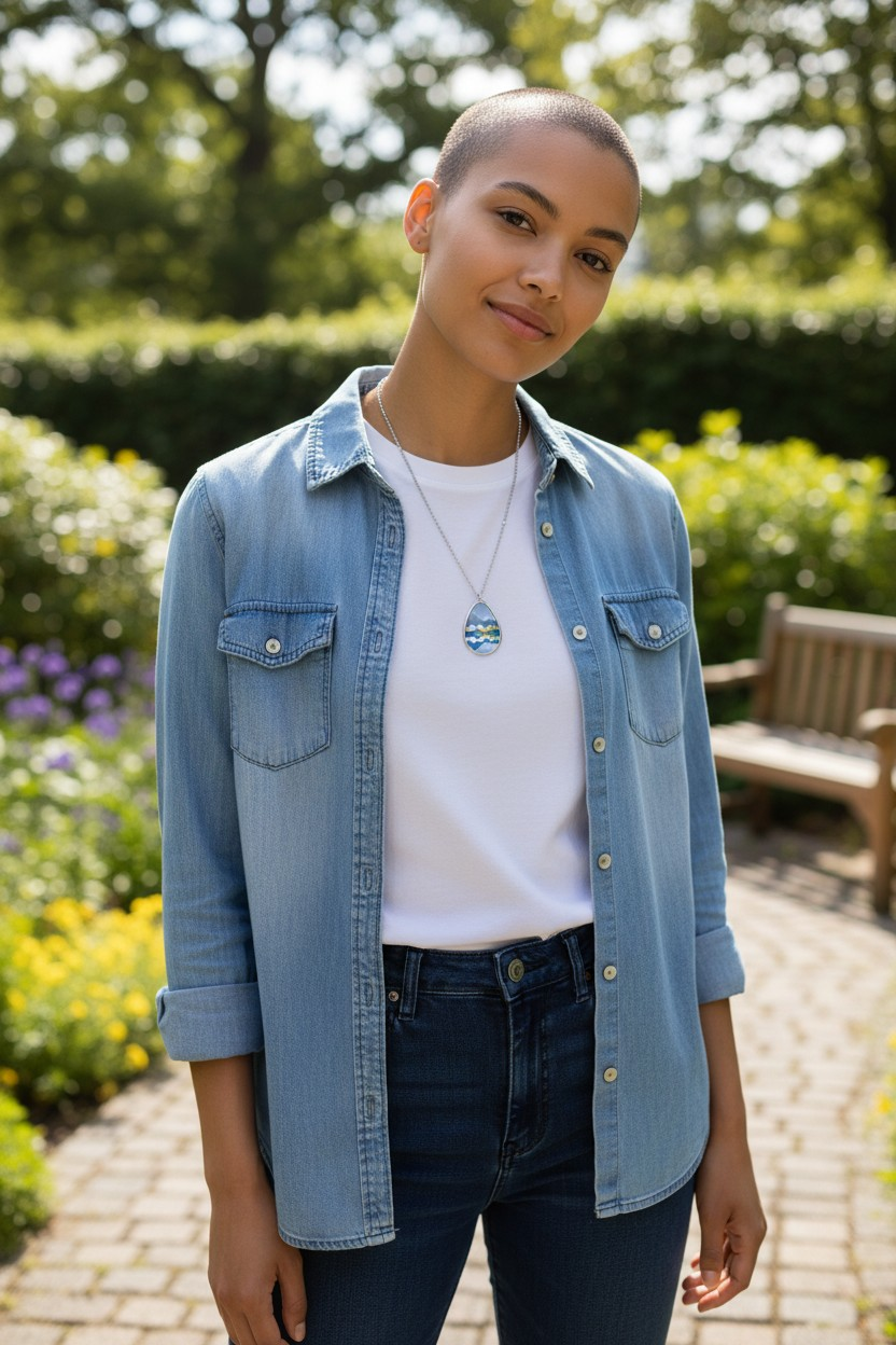 This necklace has an original, hand-painted water color or oil pastel design created by artist Robin Murdock, owner of RediculousRenderings.com. The fine art print has been lovingly curated to retain the intricate details, vibrant colors and whimsical charm of the original painting. Its chain is made with robust brass material for a dazzling look that is long-lasting, and diverse enough to dress up or pair with casual, everyday wear. The print panel is made with aluminum while the pendant itself comes in a unique shape of an ellipse.