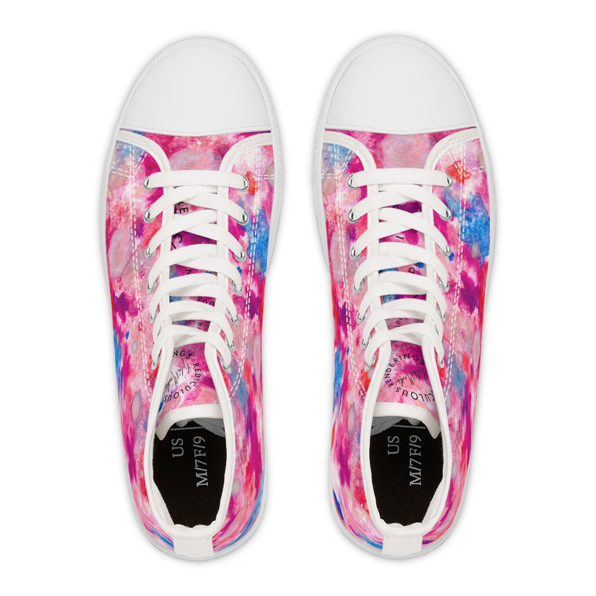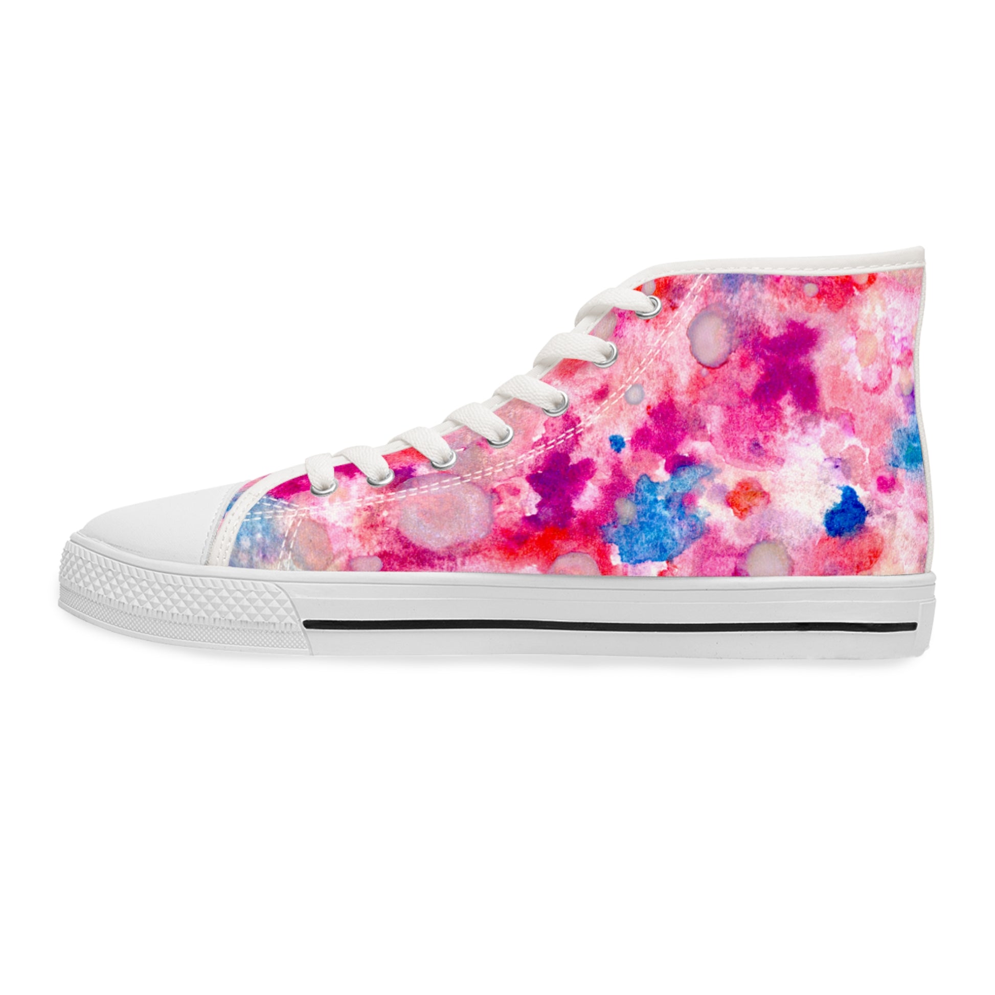 Women’s High Top Sneakers — Pink Blue Watercolor Tie-Dye Pattern